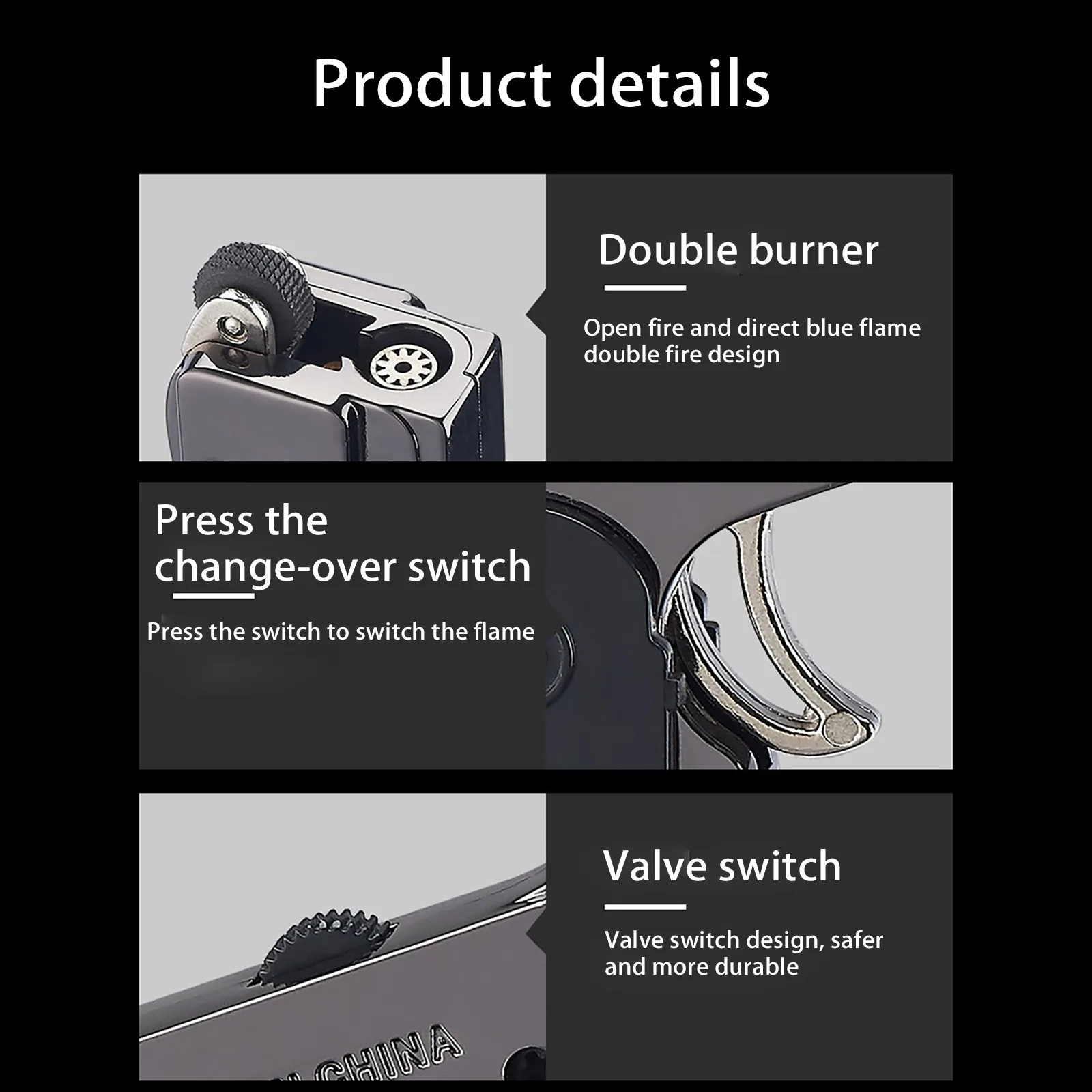 Adjustable refill: With two flames. the butane lighter has much more fire power and you can easily adjust the intensity of the flame. The double flame design gives you more experience.